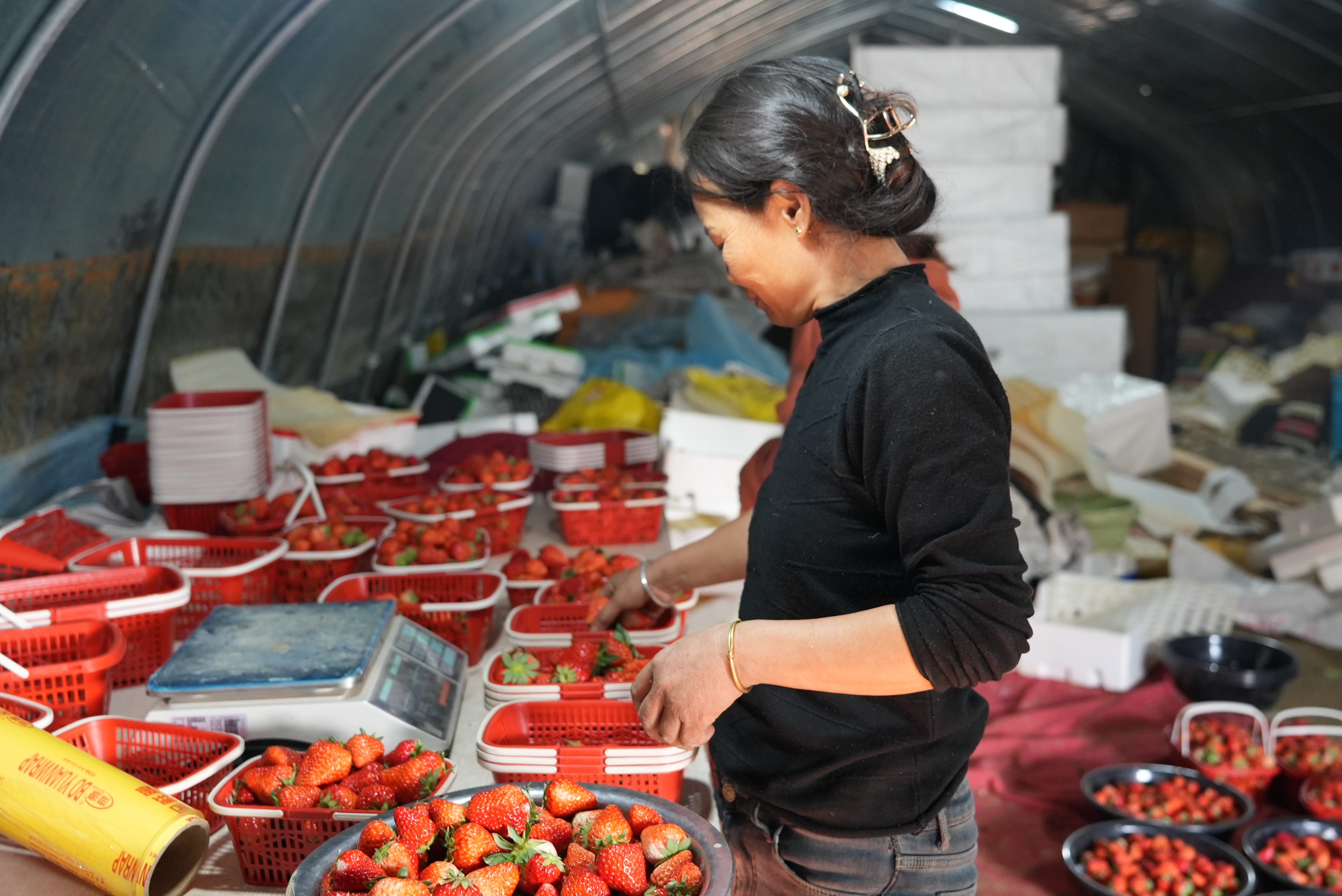 2024年6月份,160亩土地正式开工建设。搭建大棚、栽种草莓、圣女果……经过半年的辛勤耕种,草莓迎来了丰收季。