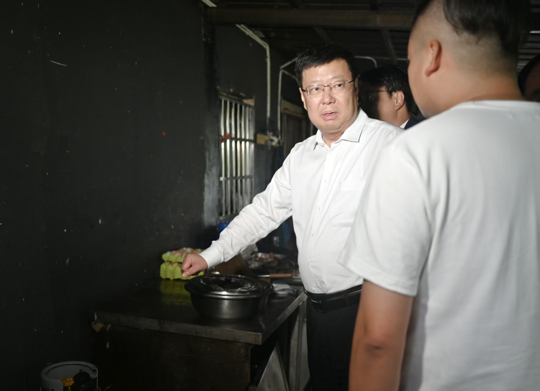 在餐饮企业嘉鱼别院,杨军走进厨房操作间,查看食材储存、卫生管理以及燃气使用等安全措施落实情况,并安排消防部门指导企业做好明火使用安全管理。要求企业在做好多业态融合发展的同时,严格落实各项安全防范措施,实现安全经营与稳健发展的良性循环。