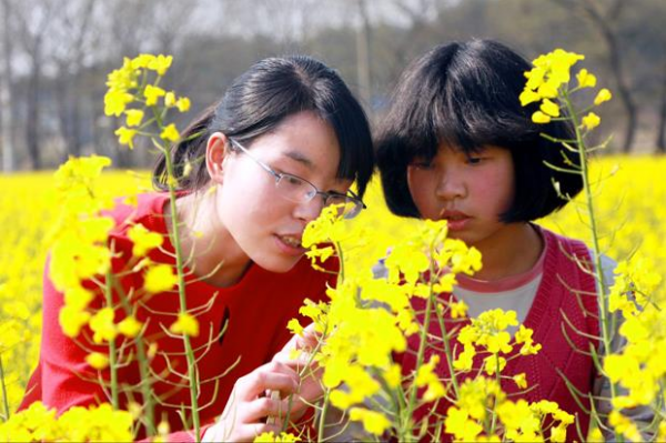 日前,通城县四庄中学师生在参观油菜种植基地。这是该校把课堂开到田间地头的一个镜头。