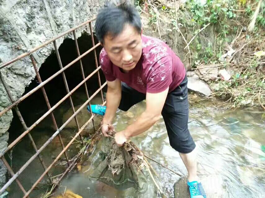 “再用点力,把缠在铁栏上的破麻袋提起来。”7月31日下午,贺胜桥镇桃林村107国道下阳武北干渠涵洞旁,正在清理淤积物的镇干部王建桥松与同事一起又清理出了一个阻水垃圾。