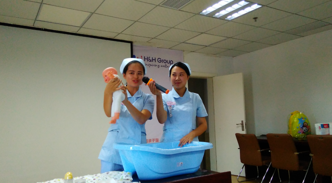 助产师向准爸准妈们介绍了自然分娩前的准备、分娩动因、决定分娩的因素、先兆临产、总产程等方面的知识。学过理论知识后,护士又通过现场道具,给准爸准妈们讲述了宝宝洗澡、脐带护理、抚触、穿尿裤穿衣、包和抱、喂奶、拍嗝等实操知识。