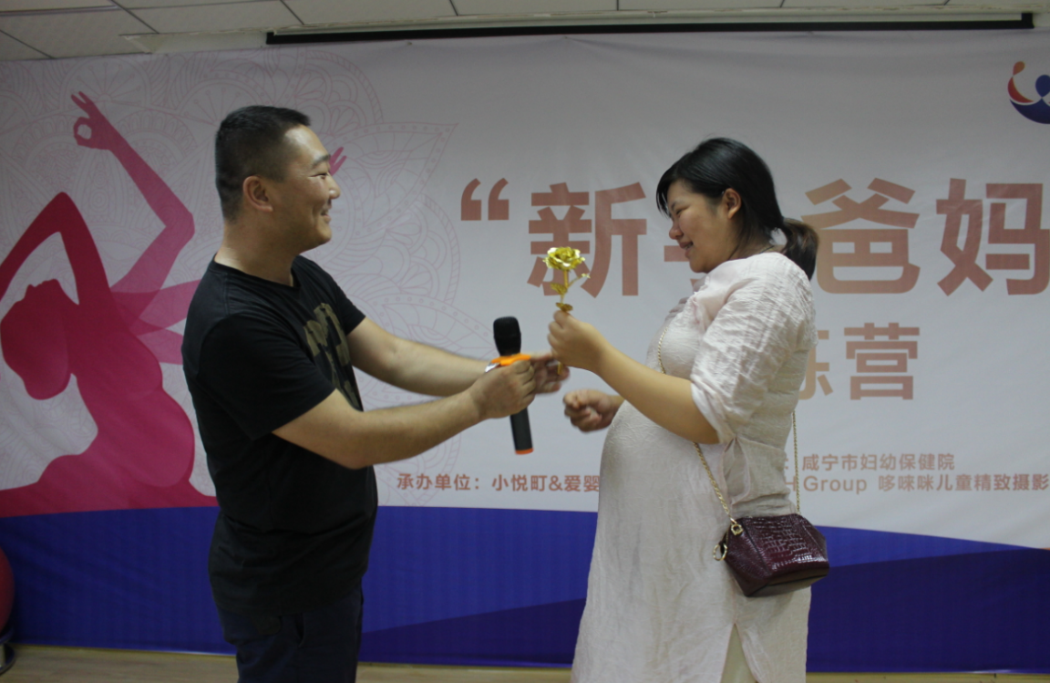 活动最后,三位准爸爸走上舞台,给三位准妈妈送上了“七夕”礼物,24k金箔玫瑰花一支。准爸爸们纷纷表示:怀胎分娩很辛苦,今后将在生活中多关心和爱护妻子,感谢妻子的付出。