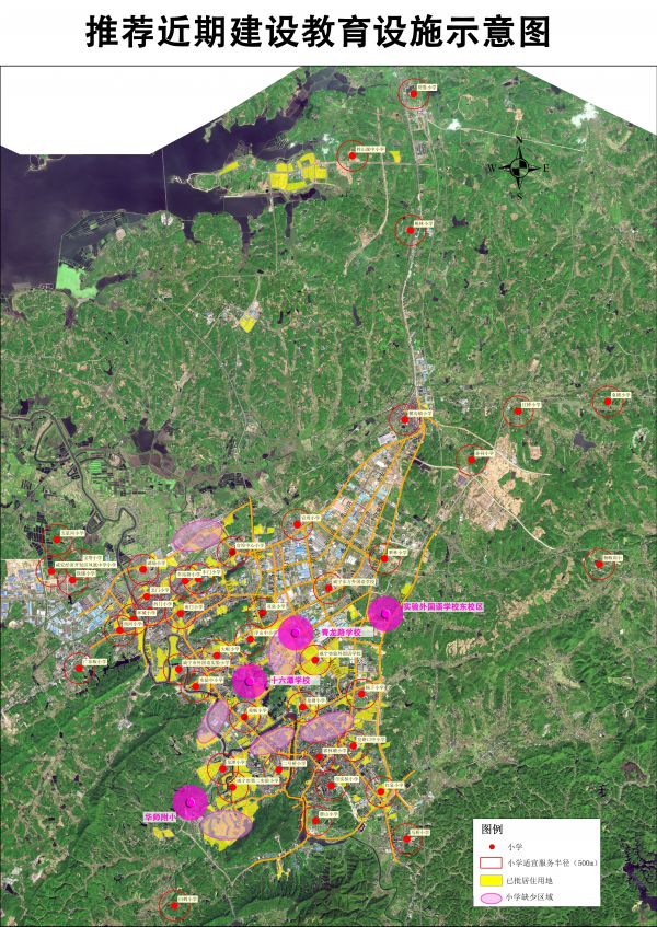 3、布局不均衡。中学按1000米服务半径计算,覆盖率仅52%,小学按700米的服务半径计算,覆盖率仅68%,比如:银桂路宜园片区、交通路片区、白茶五组片区、银泉社区片区、温泉碧桂园片区等区域中、小学教育设施缺失。
