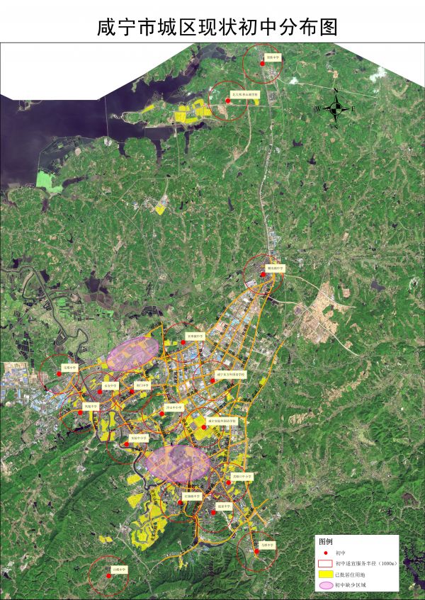 根据原“六城三区”总体规划,主城区规划布局12所中学、30所小学;工业新城规划布局4所中学、11所小学;咸安新城规划布局3所中学、6所小学;职教新城规划布局1所小学。